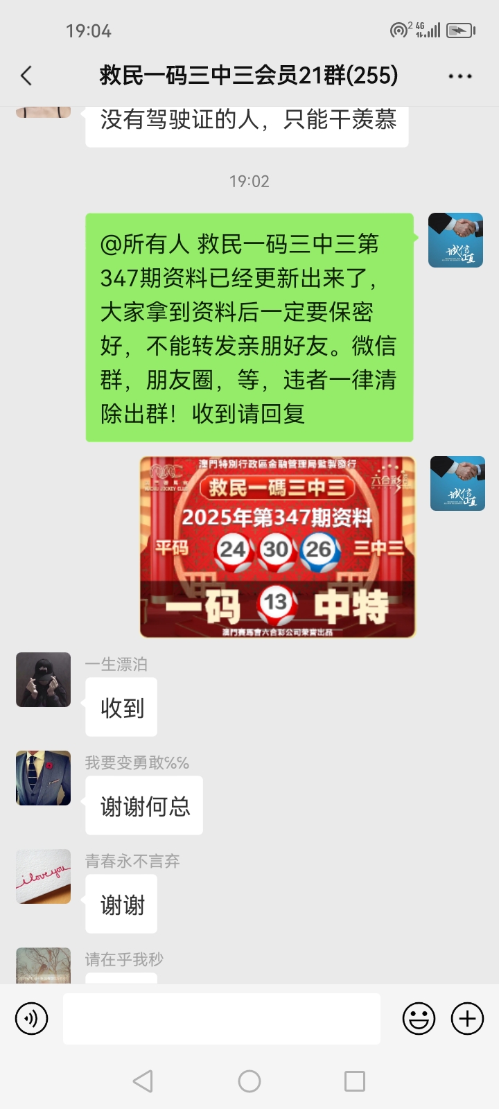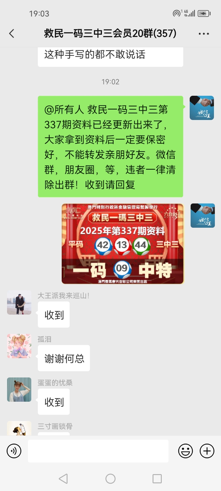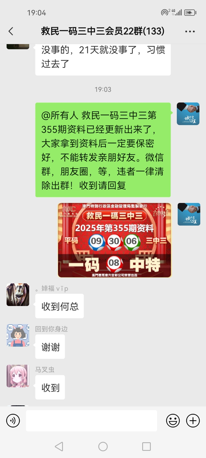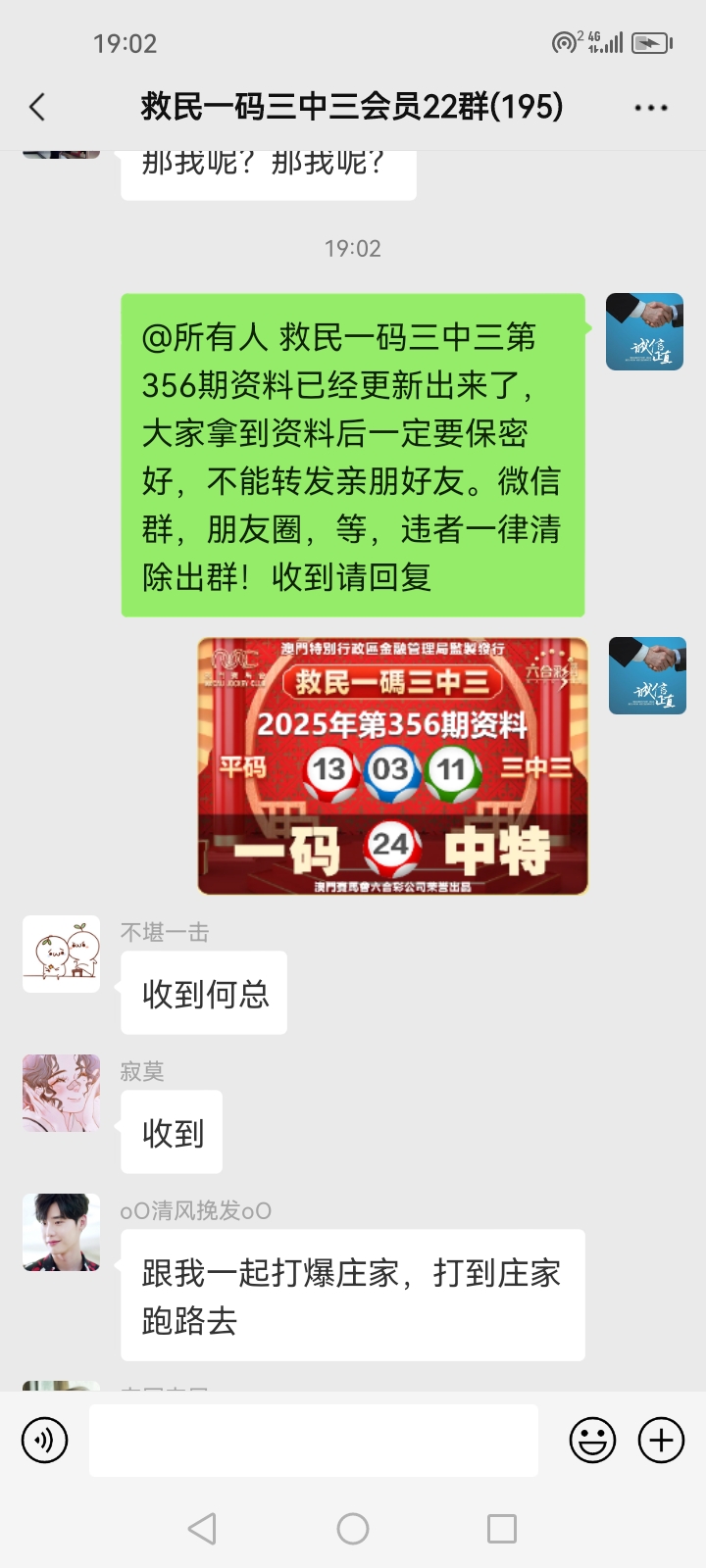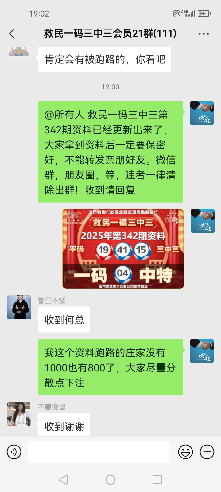 3.要是我们给这个几期,那个又给几期,今天你来要资料,明天你老婆来要,你妈妈又来要……这样就会换来很多不务正业的人,换着电话来问资料,然后利用我们的资料去赚钱,那他们就不想工作了,整天只想去找外围庄家下注赚钱就可以了,那我们这次救民活动就没什么意义了,那么社会就会比现在更加乱,希望大家可以理解。