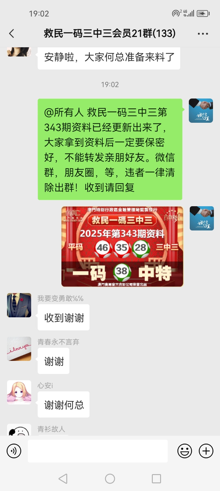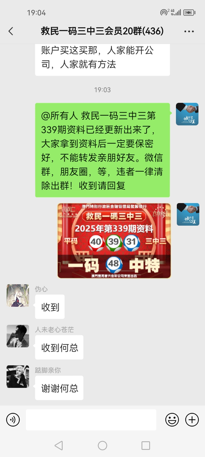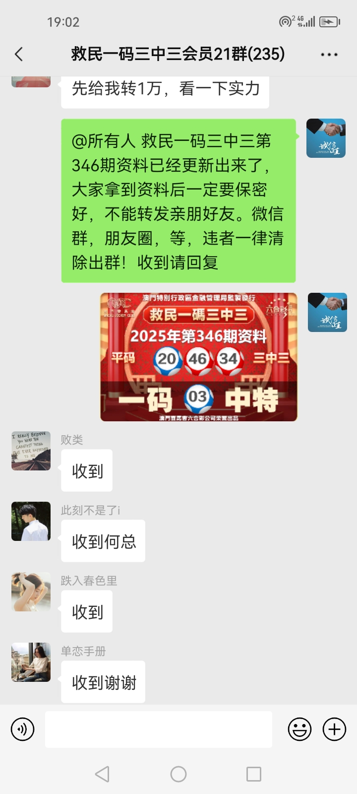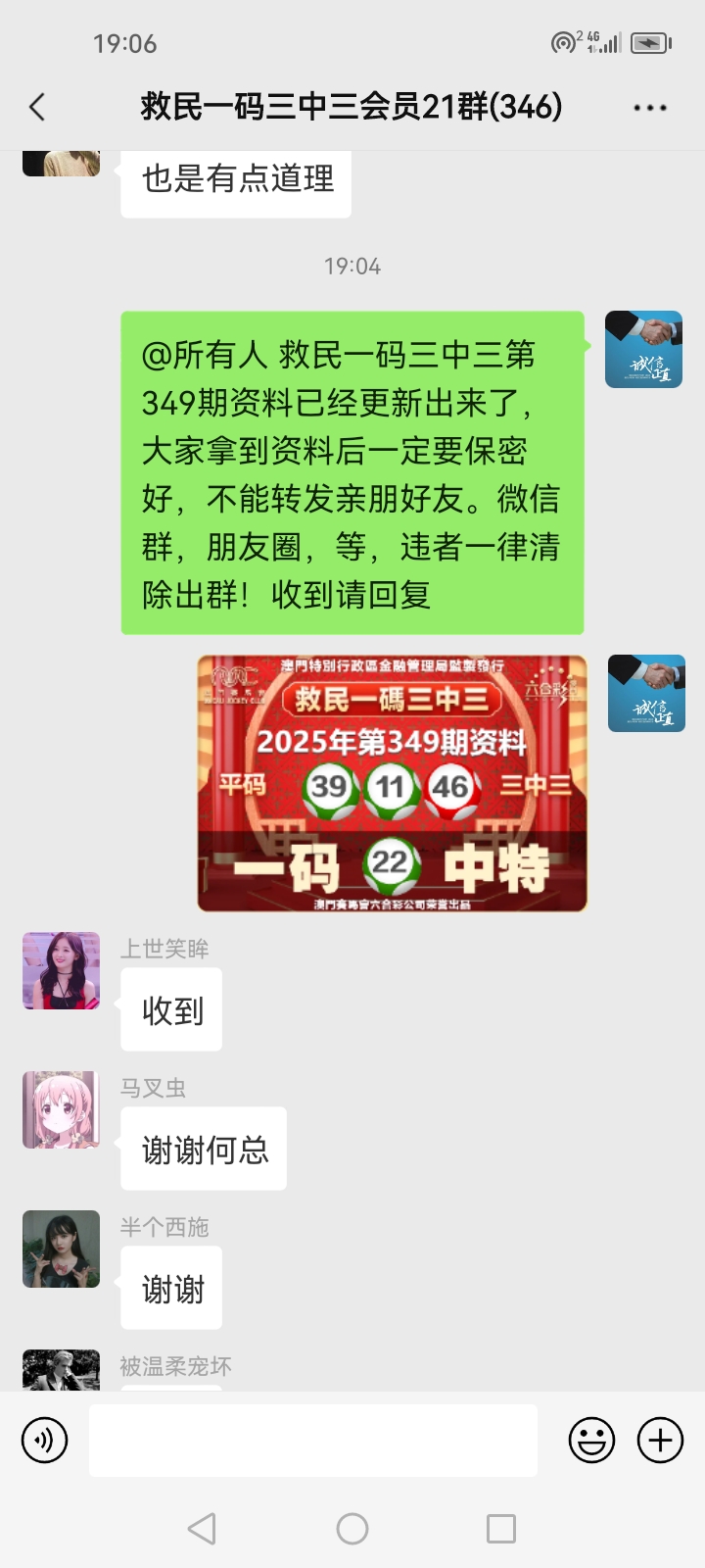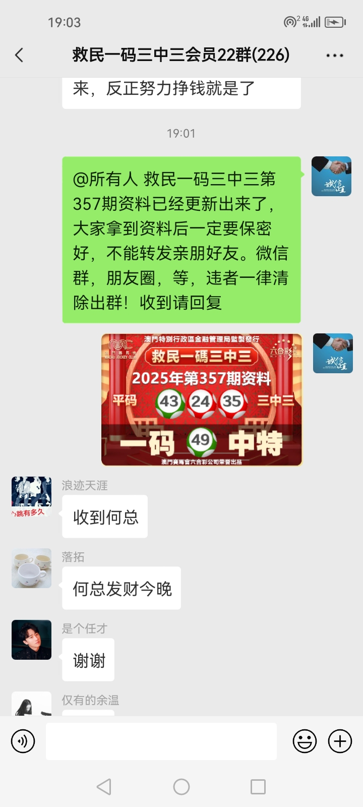 3.要是我们给这个几期,那个又给几期,今天你来要资料,明天你老婆来要,你妈妈又来要……这样就会换来很多不务正业的人,换着电话来问资料,然后利用我们的资料去赚钱,那他们就不想工作了,整天只想去找外围庄家下注赚钱就可以了,那我们这次救民活动就没什么意义了,那么社会就会比现在更加乱,希望大家可以理解。