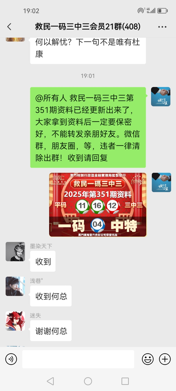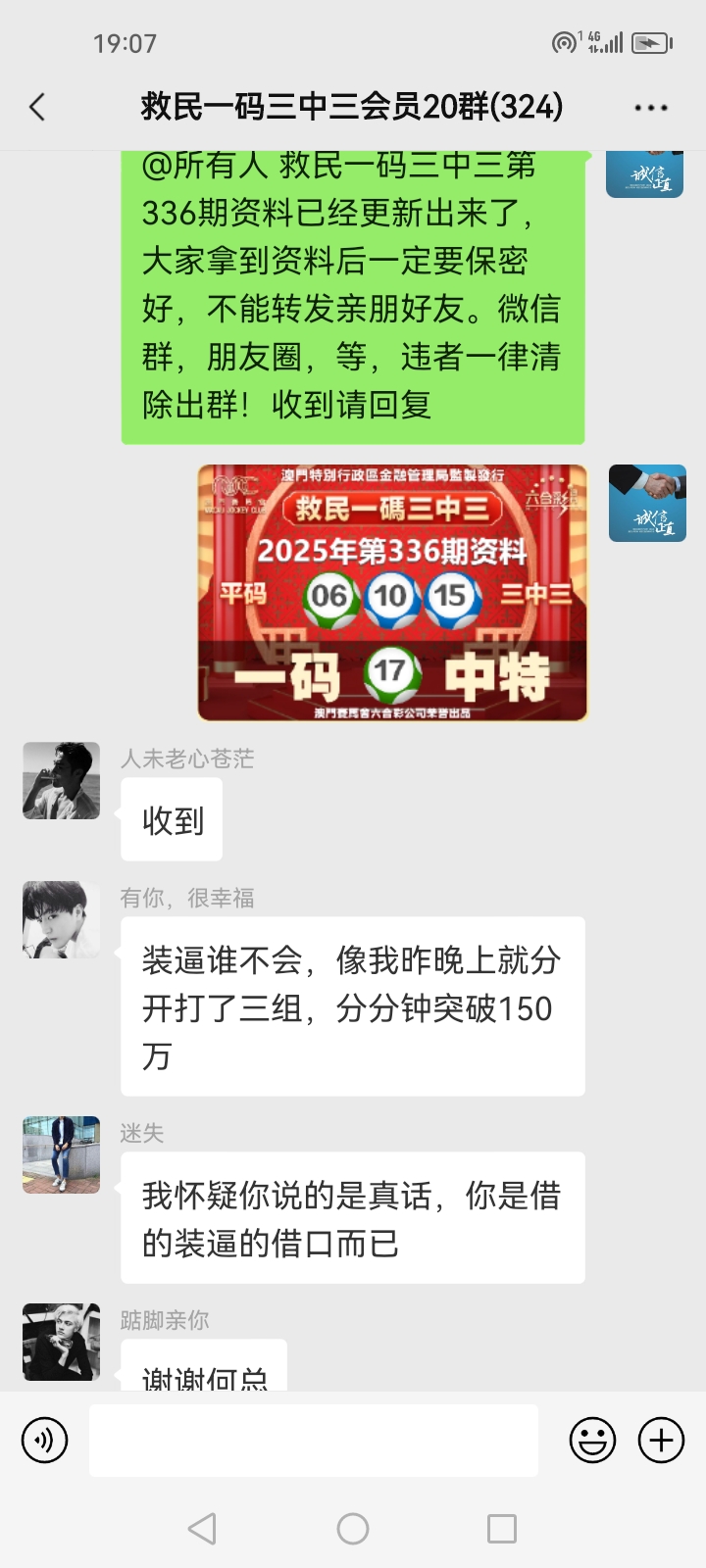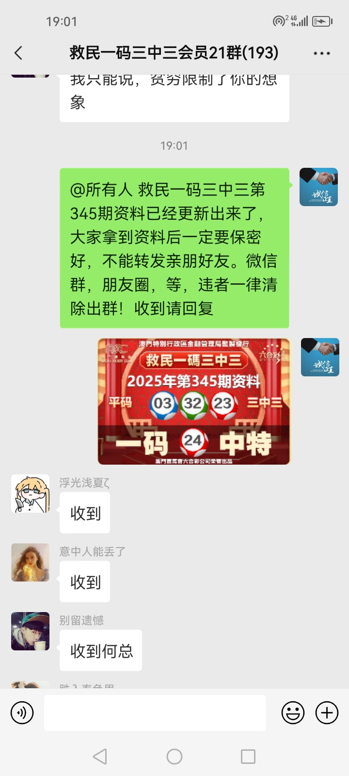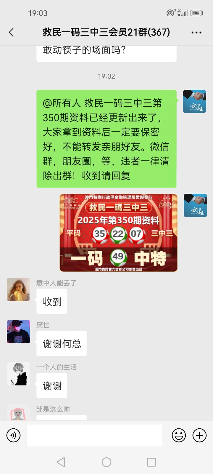 3.要是我们给这个几期,那个又给几期,今天你来要资料,明天你老婆来要,你妈妈又来要……这样就会换来很多不务正业的人,换着电话来问资料,然后利用我们的资料去赚钱,那他们就不想工作了,整天只想去找外围庄家下注赚钱就可以了,那我们这次救民活动就没什么意义了,那么社会就会比现在更加乱,希望大家可以理解。
