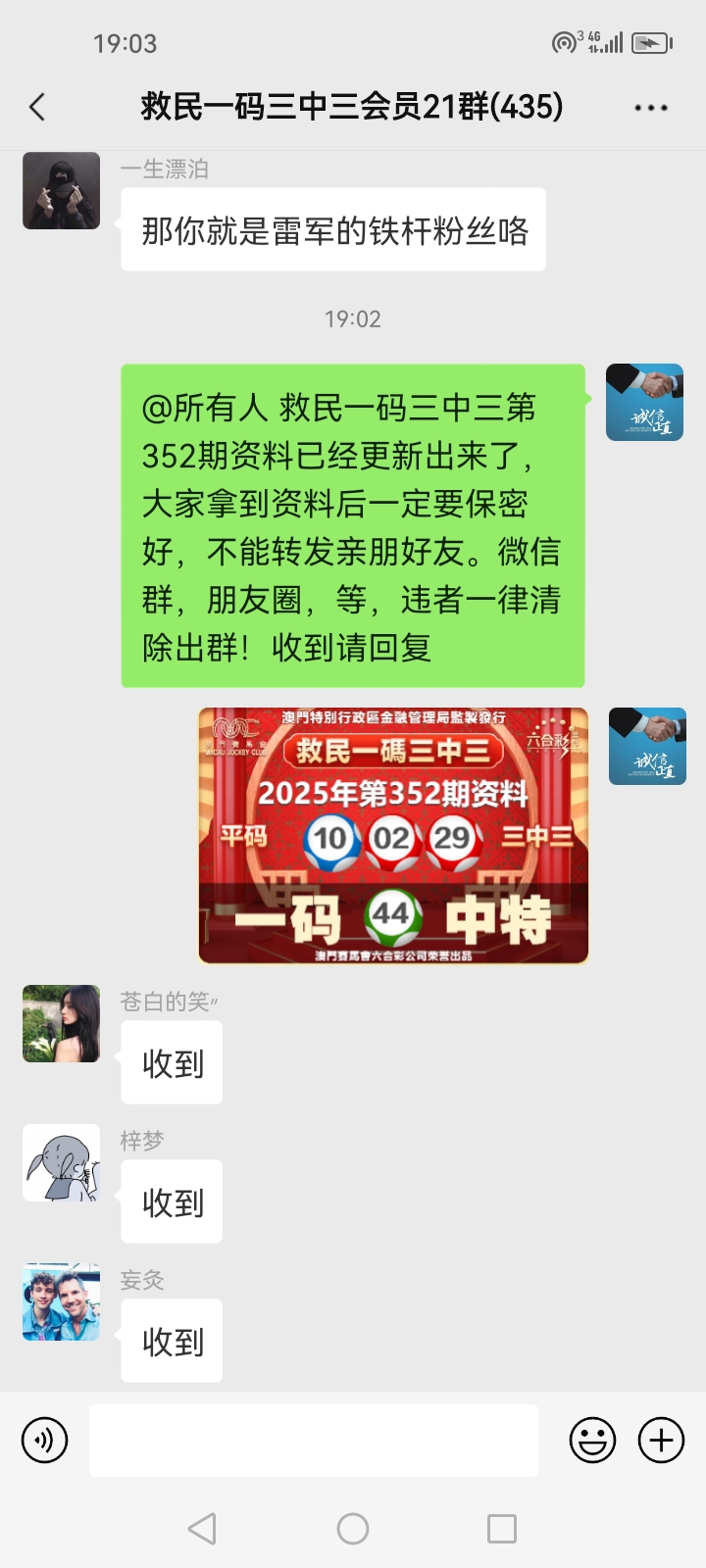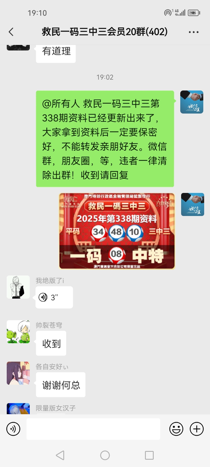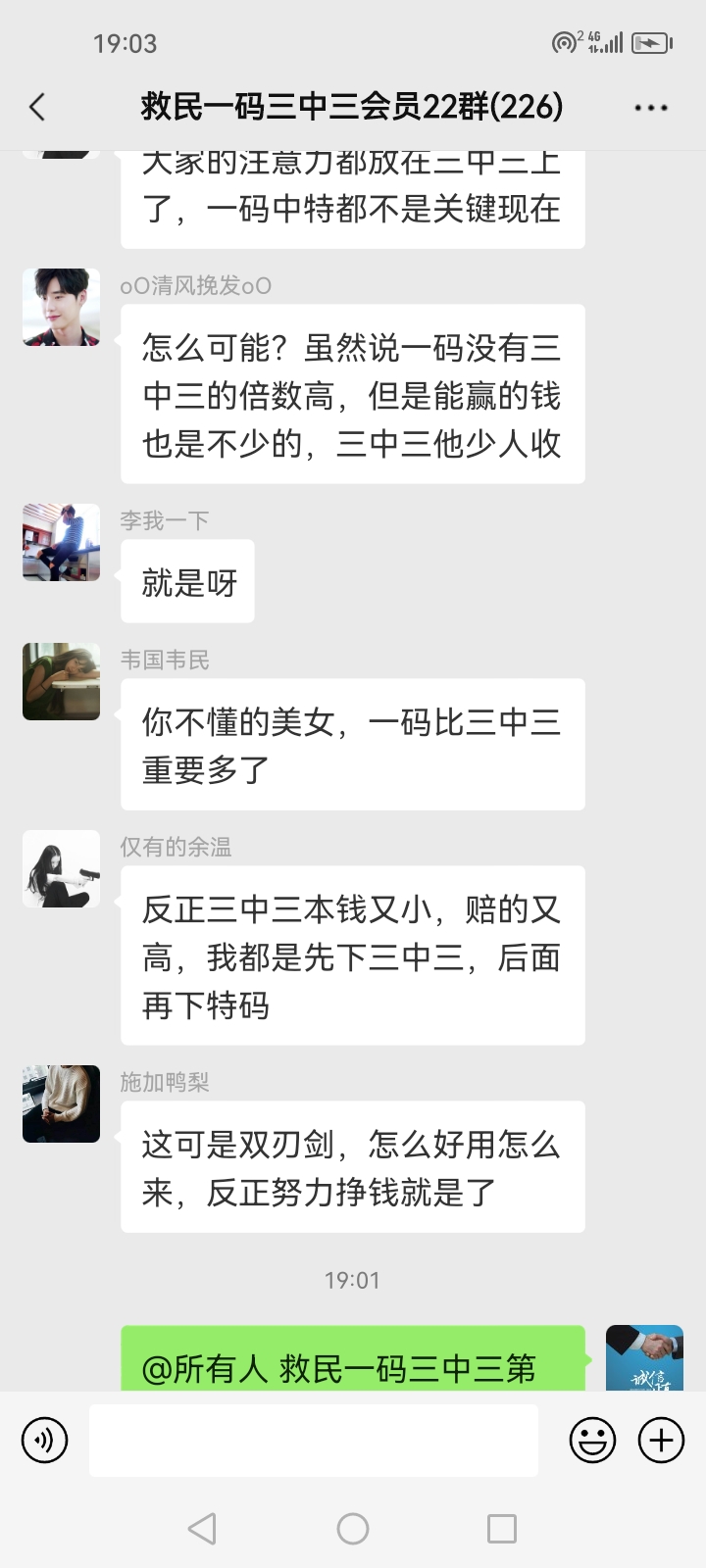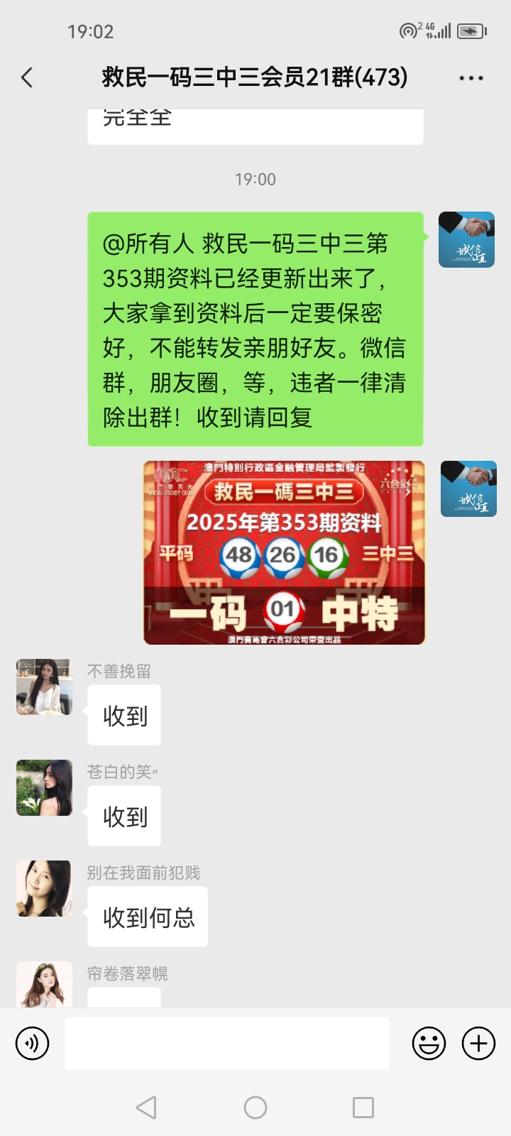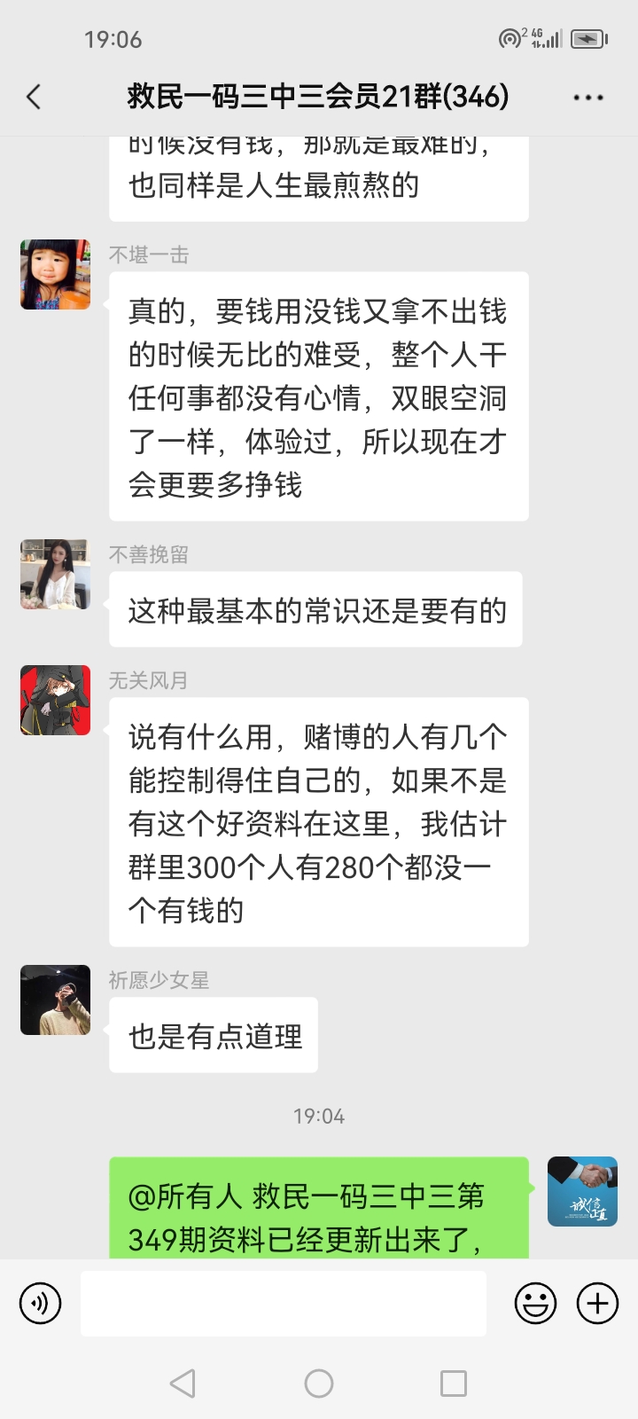 3.要是我们给这个几期,那个又给几期,今天你来要资料,明天你老婆来要,你妈妈又来要……这样就会换来很多不务正业的人,换着电话来问资料,然后利用我们的资料去赚钱,那他们就不想工作了,整天只想去找外围庄家下注赚钱就可以了,那我们这次救民活动就没什么意义了,那么社会就会比现在更加乱,希望大家可以理解。
