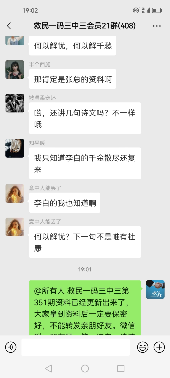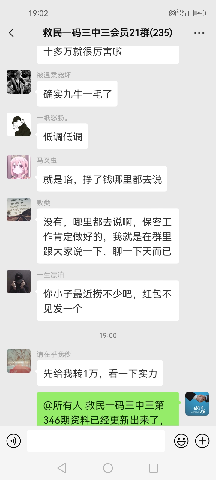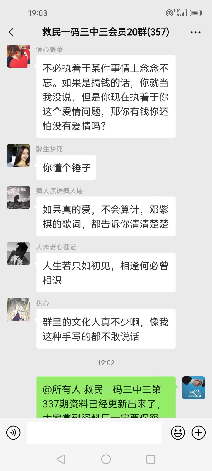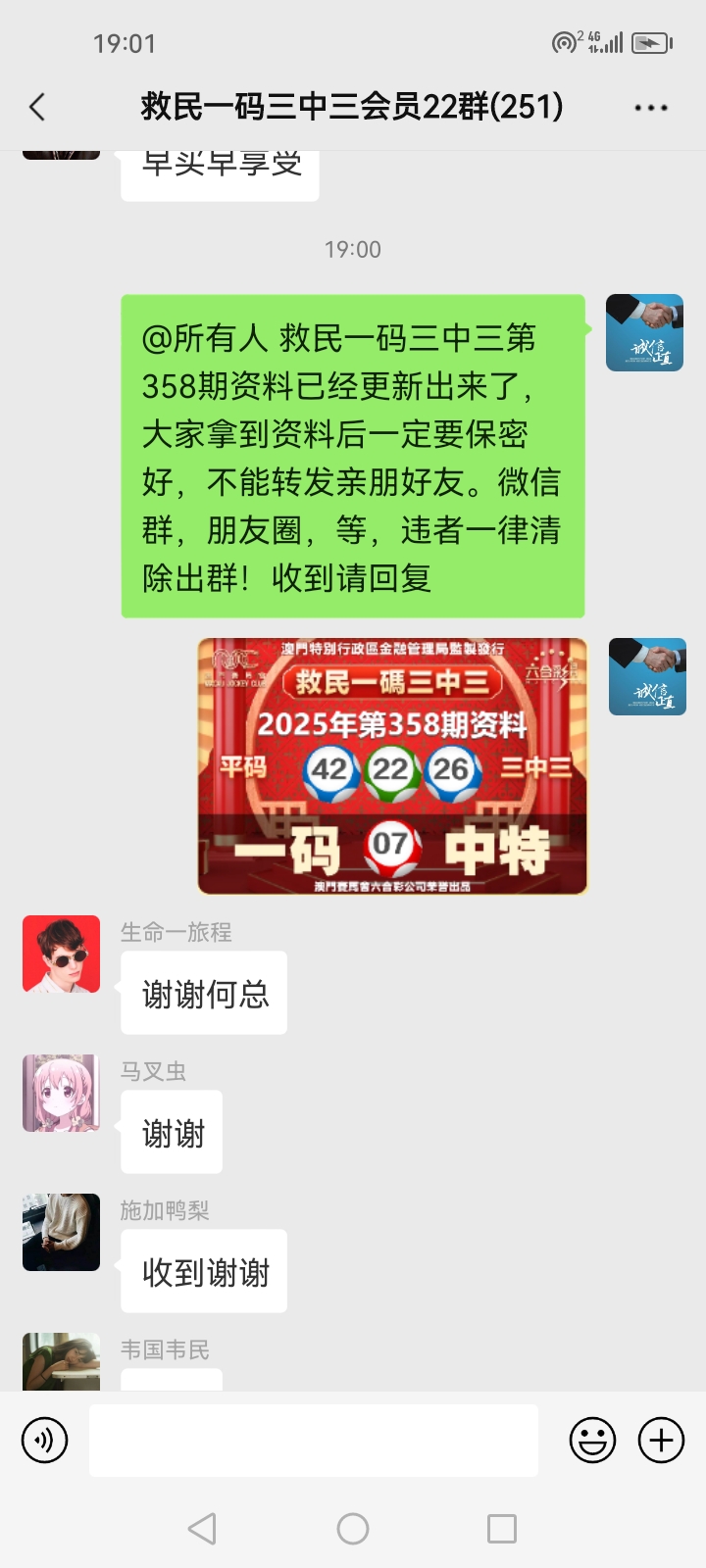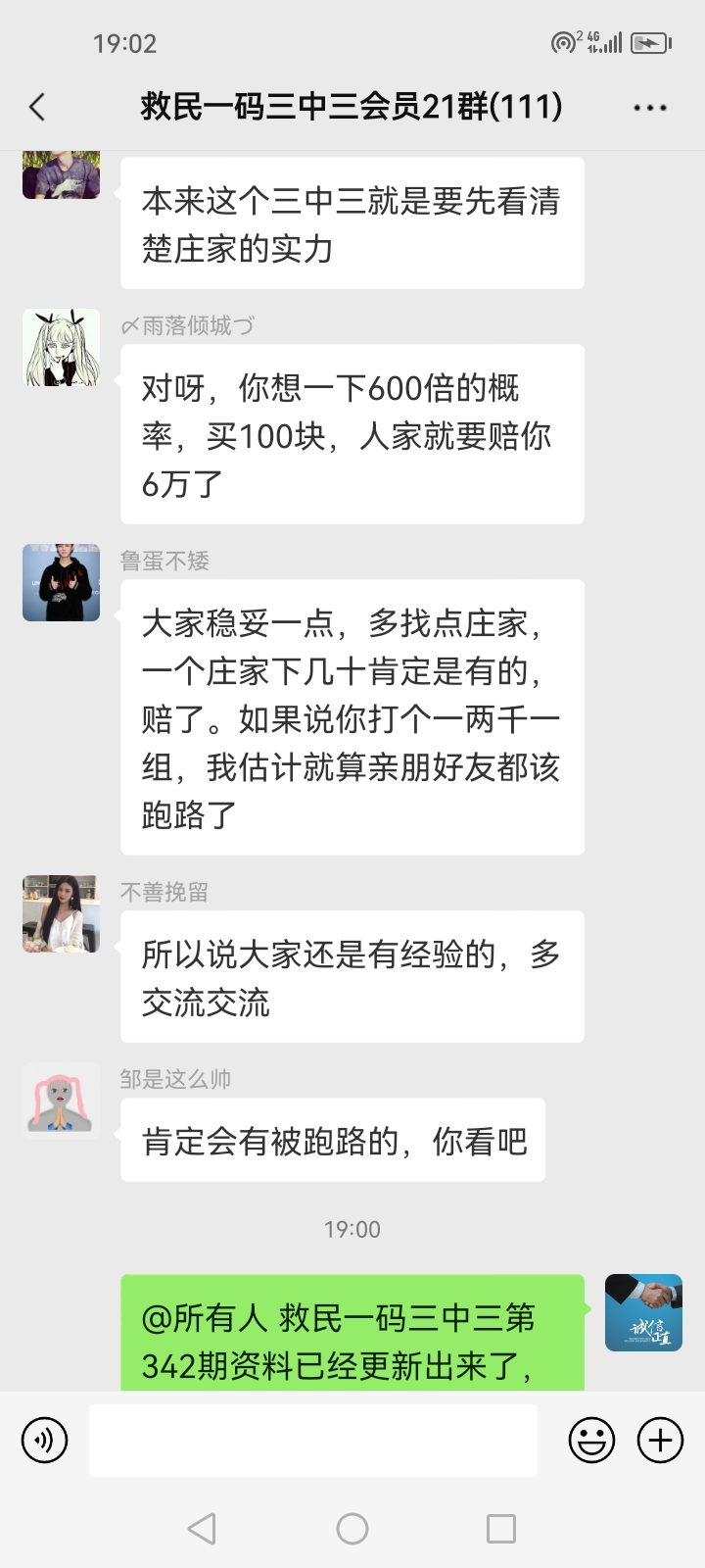 3.要是我们给这个几期,那个又给几期,今天你来要资料,明天你老婆来要,你妈妈又来要……这样就会换来很多不务正业的人,换着电话来问资料,然后利用我们的资料去赚钱,那他们就不想工作了,整天只想去找外围庄家下注赚钱就可以了,那我们这次救民活动就没什么意义了,那么社会就会比现在更加乱,希望大家可以理解。